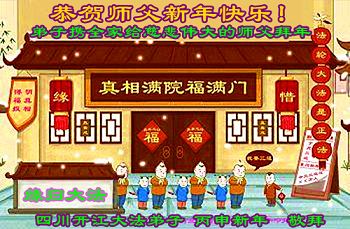 河南省平顶山市汝州市一大法弟子携子女恭祝师尊过年好!