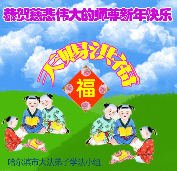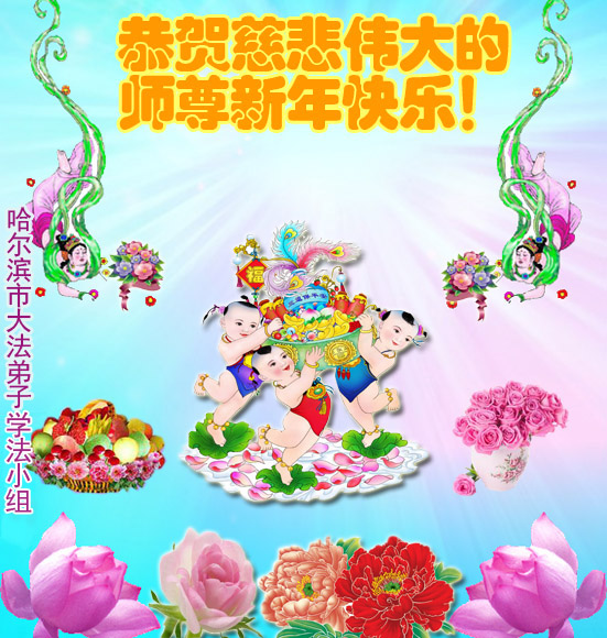 黑龙江省哈尔滨道里区学法小组大法弟子恭祝慈悲伟大的师尊新年快乐!