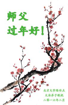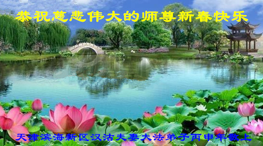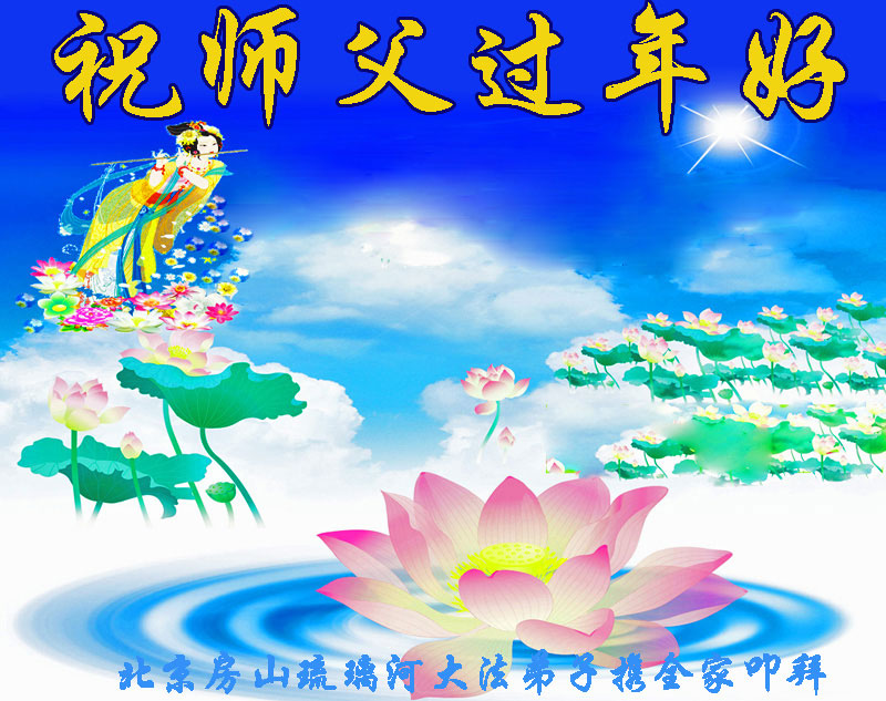 在新年到来之际,弟子代表六个学法小组及全家向伟大的师尊问好,师尊过年好,师尊辛苦了。弟子深深感到师尊就在我们身边,时时在看护着弟子,保护着弟子,为了我们共同提高在利用各种方式点化着弟子,去弟子们的各种执着心,深怕拉下弟子们,谢谢师父,师父辛苦了,跪拜恩师!弟子们一定要做好,请师尊放心。 北京大法弟子恭祝慈悲伟大的师尊新年快乐!