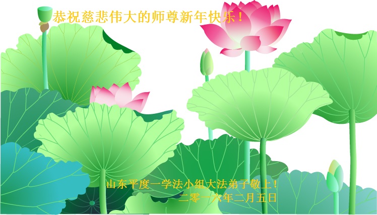 山东省青岛市平度市一学法小组大法弟子恭祝师尊新年快乐!