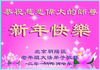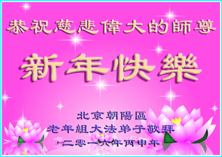 北京朝阳区老年组大法弟子恭祝慈悲伟大的师尊新年快乐!