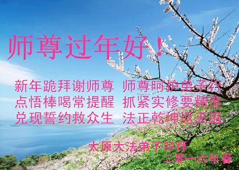 师尊您辛苦了!您为众生得救操尽了心,弟子唯有做好三件事,多救人来报答师尊的救度之恩。 北京市海淀区一大法弟子给慈悲伟大的师尊拜年,敬祝师父新年快乐!