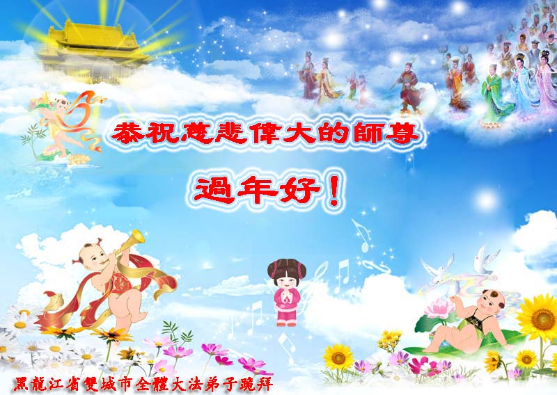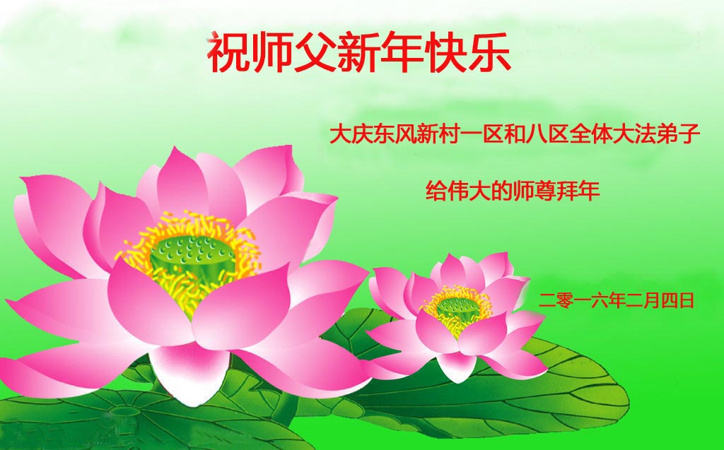 黑龙江省大庆东风新村一区和八区全体大法弟子给伟大的师尊拜年!