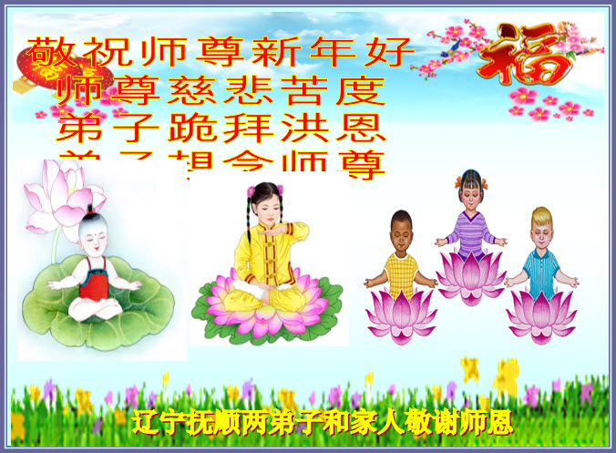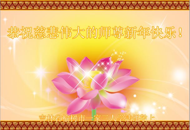 恭祝师父新年快乐! 在新的一年里,我们要听师父的话多救人,切实做好助师正法的三件事,整体提高,整体升华,跟师父回家。 重庆市一学法小组全体大法弟子及家属敬上 吉林省长春市榆树市大法弟子恭祝慈悲伟大的师尊新年快乐!