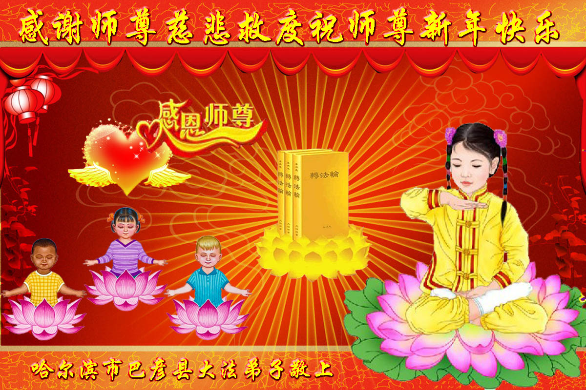 黑龙江省哈尔滨市巴彦县一学法小组大法弟子祝师尊新年快乐!