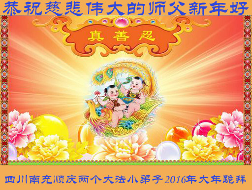 四川南充顺庆两个大法小弟子恭祝慈悲伟大的师父新年好!