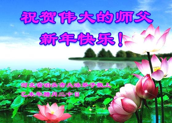 十多年的风风雨雨中,我们唯有精進实修紧跟正法進程、多讲真相救度众生兑现自己的史前誓约,才能报答师恩! 河北省泊头市老年学法小组合十敬上 河北沧州市黄骅大法弟子恭祝师尊新年快乐!