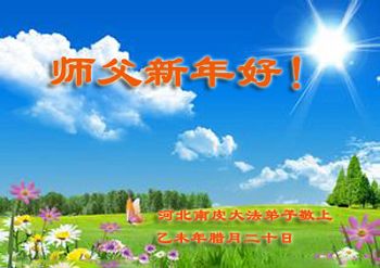 师父您好!新年好!弟子们想念您!请师父放心,我们一定勇猛精進,兑现自己的史前誓约。 河北省泊头市一学法小组合十敬上 河北沧州大法弟子恭祝师尊过年好!