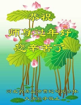 师尊过年好!弟子给您拜年了!请师尊放心,弟子一定做好三件事,多救人。 河北唐山市乐亭县大法弟子给师父拜年!