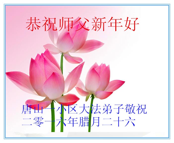 在新的一年里,我们一定真修、实修自己,更好的做好三件事,紧跟师父的正法進程,多救人。 河北唐山大法弟子恭祝师父二零一六年新年快乐!