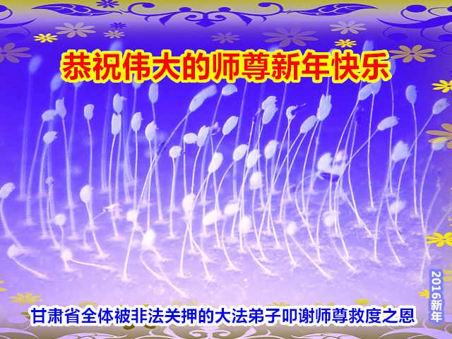 叩谢师父救命之恩!愿恩师笑口常开! 在去年下半年,被本地“六一零”非法关押期间,恩师加持弟子向内找出人心和执着,在魔难中正念正行,才放下人心,冲破一道一道魔关,走了出来。面对大街上匆匆忙忙的人流恍若隔世,能摔倒了再一次很快站起来,一步一步,我深切感受到恩师的慈悲加持和引领,弟子犹如重生! 现在弟子谨遵师父要求,决心不再在痛悔中消沉,敬师敬法,抓紧时间多学法,把自己当着一个真正的修炼人。在生活的方方面面严格要求自己,向内找实修自己的一言一行;以法为师,一切用大法的要求衡量,从根本上改变自己许多变异的观念,否定旧势力的安排,一定要尽力把握机缘讲真相救人,做一个真正的大法弟子。 江苏大法弟子 甘肃省全体被非法关押的大法弟子恭祝伟大的师尊过年好!