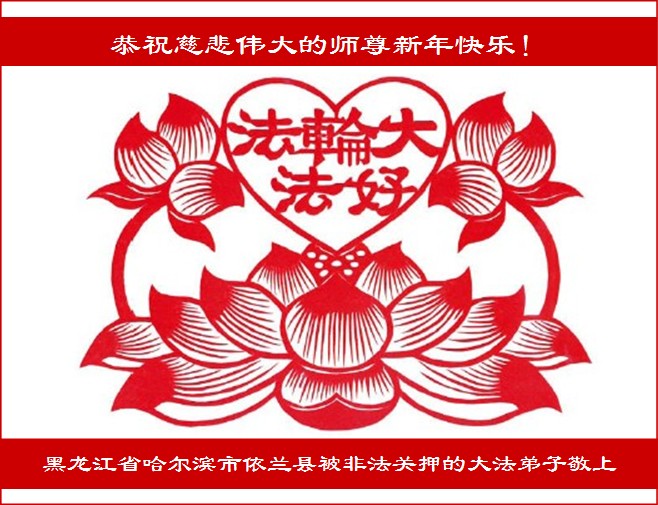 恭祝师父新年快乐!感谢师父慈悲救度,我也想帮助那些无法上网的老年大法弟子向师父跪拜。还有那些被中共非法关押的同修表达他们对师父的想念。千言万语无法表达师父对我们的慈悲救度,兑现大法弟子的史前大愿,等师父回来。 石家庄大法弟子 黑龙江哈尔滨市依兰县被非法关押的大法弟子恭祝慈悲伟大的师尊新年快乐!