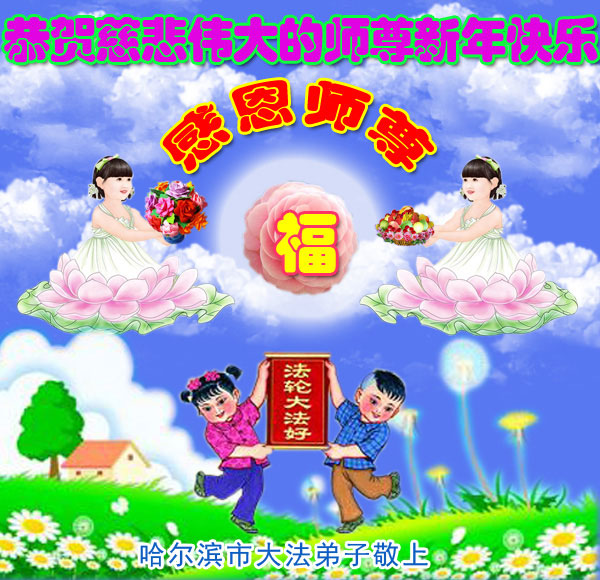 黑龙江省哈尔滨大法弟子恭贺慈悲伟大的师父新年快乐!