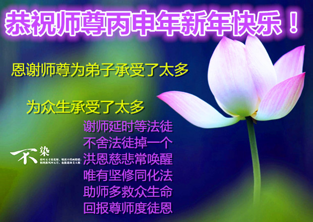 师尊您辛苦了!弟子们在新的一年要更加精進,做好三件事,助师多救众生! 山东一宋姓大法弟子恭祝师尊新年好!