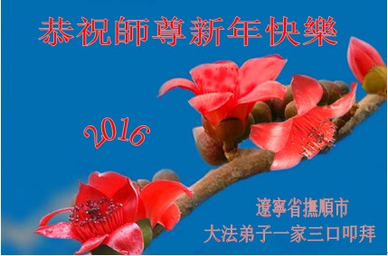 【明慧网二零一六年二月九日】 辽宁省抚顺市大法弟子一家三口恭祝师尊新年快乐!