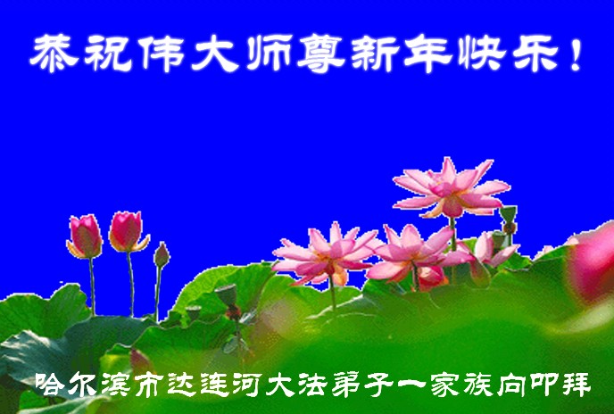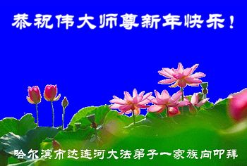 黑龙江省哈尔滨达连河大法弟子一家族恭祝师尊新年快乐!