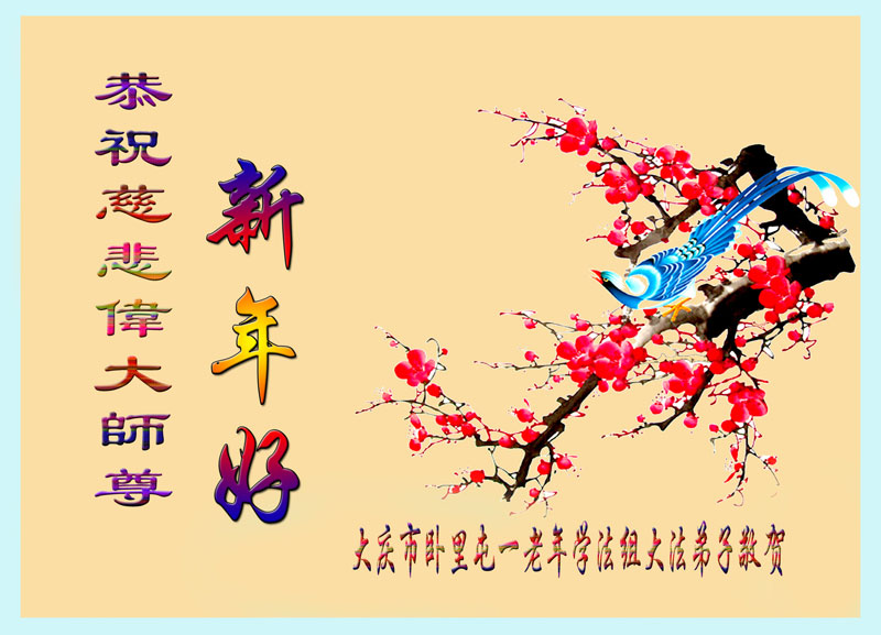 师尊您好!弟子们感恩师尊慈悲救度!在新的一年里我们要更加努力精進,多学法向内找实修自己,做好三件事多救众生兑现我们的誓约,圆满跟师父回家! 黑龙江省大庆市卧里屯全体大法弟子恭祝慈悲伟大师尊新年好!