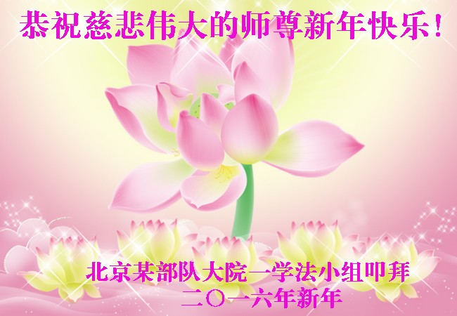 师父您辛苦了!我们想念您!我们感谢您的慈悲救度,要珍惜这万古机缘,听师父的话,跟师父走,做师父的合格弟子,跟师父回家。 北京海淀某部队大院全体大法弟子叩拜 二零一六年二月五日 空军某部大法弟子恭祝慈悲伟大的师父新春快乐!