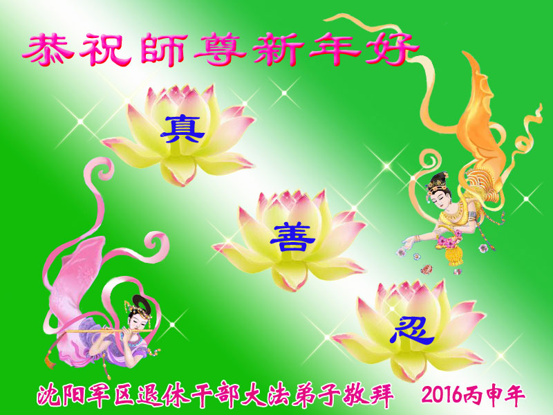 恭祝慈悲伟大的师尊过年好!感谢师尊救度!法轮大法好!真善忍好!弟子一定做好三件事,跟师尊回家。 大陆退伍军人大法弟子恭祝师父新年好!