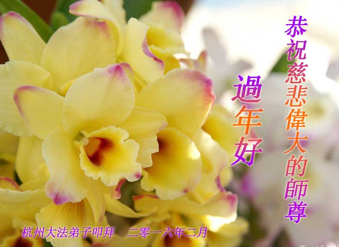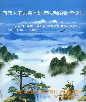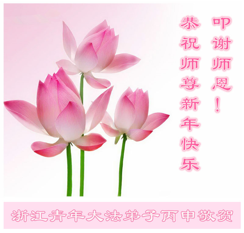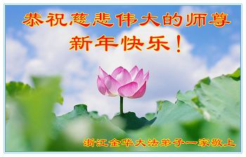 感谢师父的慈悲救度!师父您辛苦了!叩谢师尊!弟子一定修好自己,抓紧多救世人。 浙江省宁波市余姚市全体大法弟子恭祝慈悲伟大的师尊新年好!