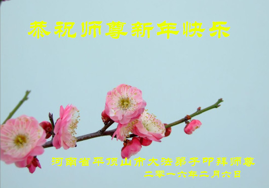 我是安徽省临泉县农村大法弟子,值此新年到来之际,我谨代表全家十口人向慈悲伟大的师父致以最高的新年问候,真心实意跪拜师父的救度之恩。 师尊您好!师尊辛苦了! 安徽大法弟子 河南平顶山市大法弟子恭祝师尊新年快乐!