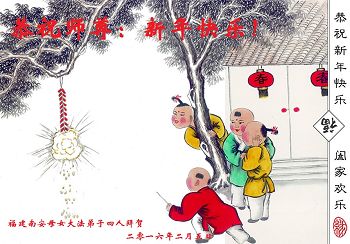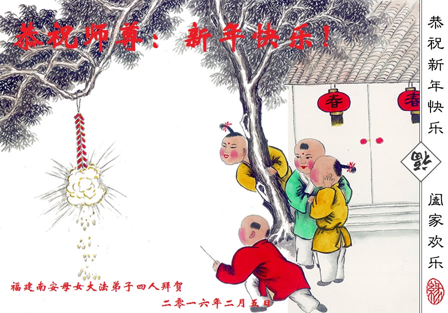大法弟子全家特感激伟大师尊慈悲苦度,全家恭祝师尊新年好! 2016·2·8 甘肃省兰州科学院大法弟子恭祝师尊过年好!我们全家祝师父节日快乐!