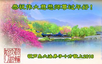 祝慈悲伟大的师尊新年好! 我们在新的一年里,做好三件事,跟师尊回家。 葫芦岛学法小组全体大法弟子 叩拜师尊。 二零一六年二月七日 辽宁省葫芦岛市兴城市东辛庄镇全体大法弟子恭祝师父过年好!