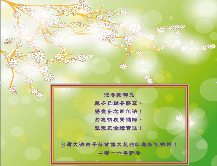 台湾大法弟子恭贺伟大慈悲的师尊新年快乐!