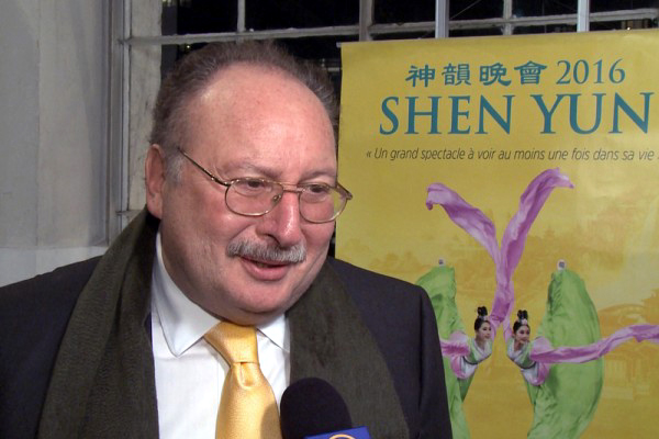 这位来自古老埃及的末代君王敬仰中华文化,他读过孔子的书,也练过武术。他告诉记者:“我非常崇拜中华文化和华夏历史,我度过了一个非常美好的夜晚,我向神韵表达由衷的感谢!”他认为:“中国曾经在相当漫长的历史时期一直领先,走在世界最前沿,而现在中华文明的复兴,我觉得非常的好。” 普罗旺斯埃克斯区长:感到内心的平静与幸福  赛斯•古迪荣(Serge Gouteyron)先生观看了在普罗旺斯大剧院的神韵演出 |