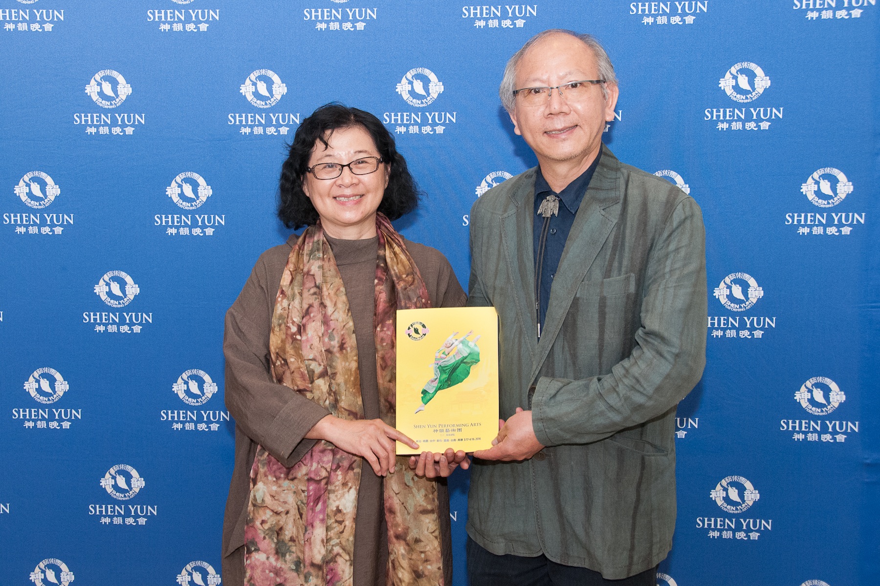 曾获纤维艺术及民族工艺奖的天染工坊艺术总监陈景林,于四月六日观赏神韵台中场的演出后盛赞神韵色彩美学经典,充满希望。他表示神韵是一种经典的呈现,“这个呈现是一个高度的艺术性的调合,整个舞台、服装道具,以至于声光效果,都呈现得非常完整。” 曾在中国边疆做过田野调查的陈景林,认为神韵将不同的民族特色呈现得非常好,“包容力、包容性很高。而且把她的精髓,表现非常淋漓尽致。” 他以做造型艺术的专业角度来欣赏神韵,认为将中国色彩运用得非常好,非常醒目、直接。他观察到神韵在色彩的使用上,以对比性的配色为主,而且是经典的呈现,“比例抓得很好。比如说她用大量橙色系的颜色,就用非常少量的蓝,或者少量的黄绿,去衬托她。”再者,“有很多色彩的渐层效果,然后渐层之中,适当的留白。”他认为这是“高端的用色。” 陈景林赞佩这样高端的用色,所以舞台呈现“华丽的效果,但是却不俗气,这个很难得。”他阐述到:“里边用了少许的紫色去衬黄橙,这种效果就是在对比性的调色里边,算是用到很经典,就是比例用的很美。”而且对色彩呈现的效果,他赞服地说:“感觉到很喜悦,这个效果能够呈现,华丽而喜悦。”让观众感受到“对生命充满希望,我觉得很正面。”他认为神韵呈现的“是正面的,或者歌颂,或者对未来希望性的表达。”他相信神韵的演出对世界各地都是好的影响。 陈景林觉得神韵演出是一件了不起的事情,他要尽最大力量感谢神韵艺术总监对世人的启发和影响。 研究所所长:承传文化的精髓 匡正人心  明道大学课程与教学研究所所长黄源河感佩神韵传承文化,并发扬光大。 |