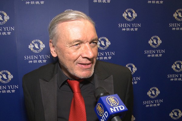 被称为欧洲最有才华年轻指挥家之一的康斯坦丁•迪米纳克斯(Konstantinos Diminakis)先生观看了四月六日维也纳的演出后,对晚会的舞蹈和乐团的演奏都赞不绝口。迪米纳克斯先生来自希腊,曾在欧洲许多国家的乐团担任指挥,目前是维也纳歌剧院室内乐团的艺术总监。迪米纳克斯先生对二胡情有独钟,他觉得这是“人的声音在歌唱”。他表示从神韵音乐中得到很多启示,“最大的启示是,神韵运用这种音乐让自己平静下来,静思内心深处的想法,成为更好的人!”  图6:著名多栖音乐家罗伯特•沃纳(Robert Werner)先生慕名观看了四月二日奥地利萨尔兹堡的演出后表示,神韵果然非同凡响。 |