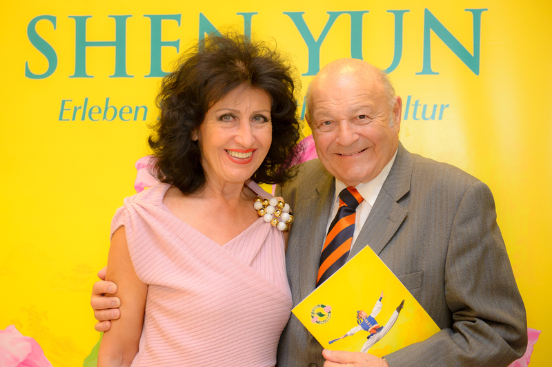 文化艺术管理学教授格琳德•冯•斯班林(Gerlinde von Spannring)女士看完神韵激动表示,自己完全被震撼了,找不到任何词语来表达神韵的美好,也找不到词语来形容自己的激动。她声音有些颤抖地一遍又一遍地说:“有幸能欣赏到这场演出,我感到无比幸福。”她说:“神韵展现的中国文化就美到这种程度,惊人的美,美到令我屏住呼吸。可惜人们对她知道的太少了。我只能跟每一个人说,去看这场演出吧!” 神韵演绎五千年历史 欧洲人重拾信心和希望 欧洲观众在感受美好的同时,也从神韵的演出中找回了内心深处对体会到神韵传达的中国传统文化中善良、美好和神性的内涵。  图9:布克哈德•恩斯特(Burkhard Ernst)先生和夫人卡门•施密特(Carmen Schmidt)对神韵赞不绝口。恩斯特先生说:“古老的中国复活了!” |