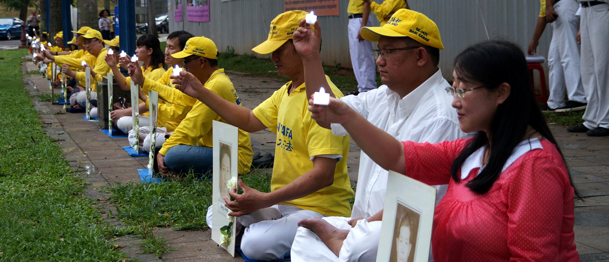 活动中,学员们点燃烛光悼念在中国被迫害致死的法轮功学员 |