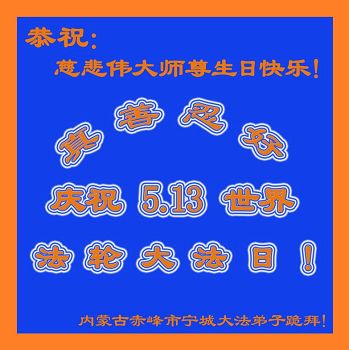 内蒙古赤峰宁城大法弟子恭祝慈悲伟大师尊生日快乐!普天同庆5.13世界法轮大法日!