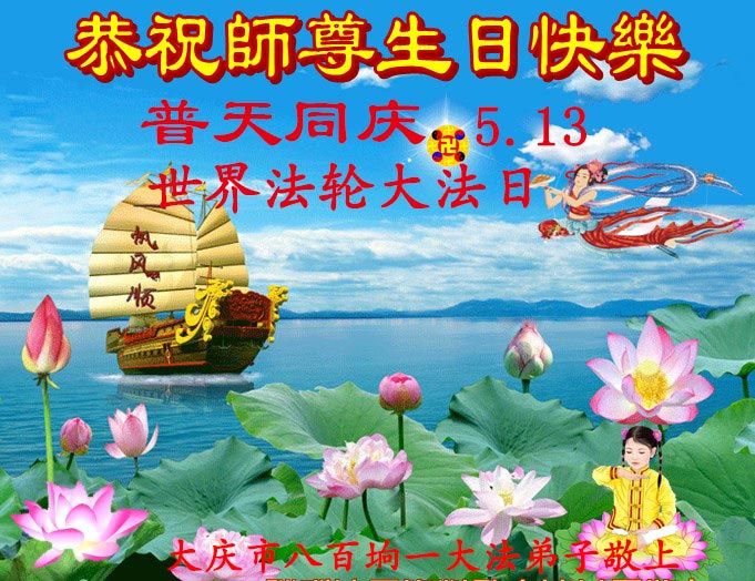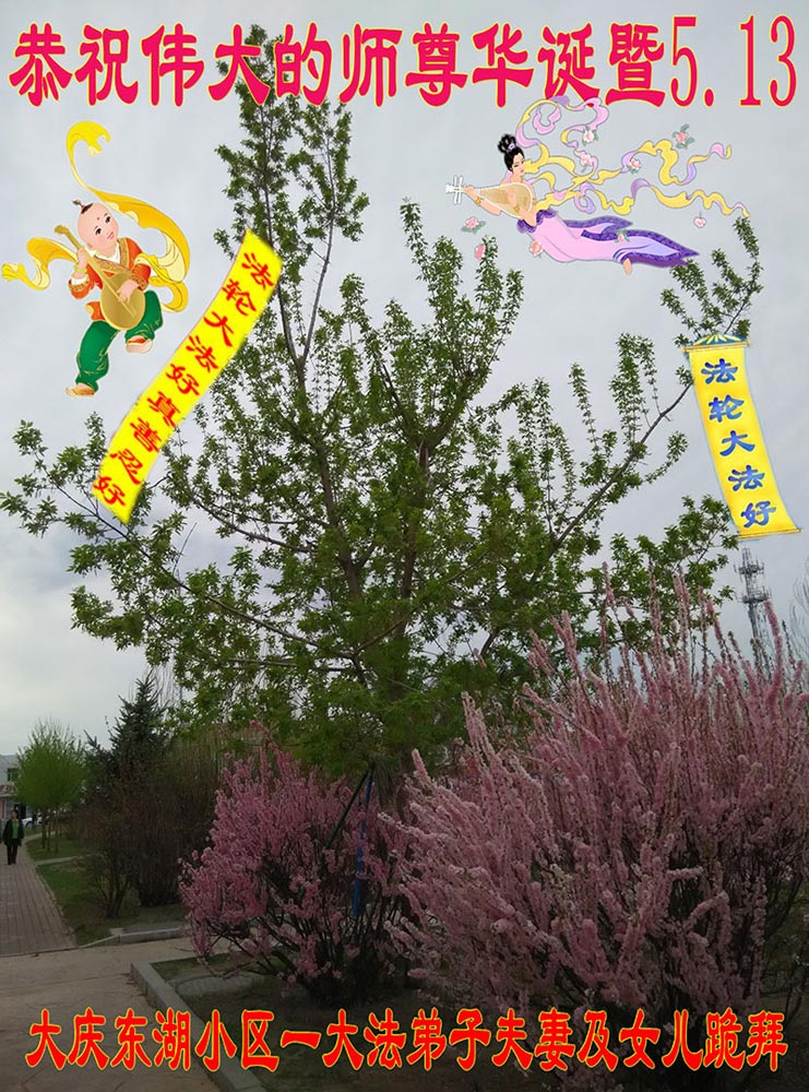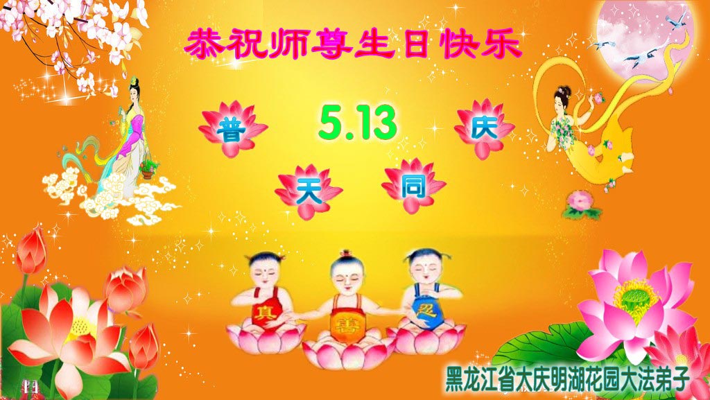 黑龙江省大庆大法弟子及家人恭贺师尊华诞及513世界法轮大法日!