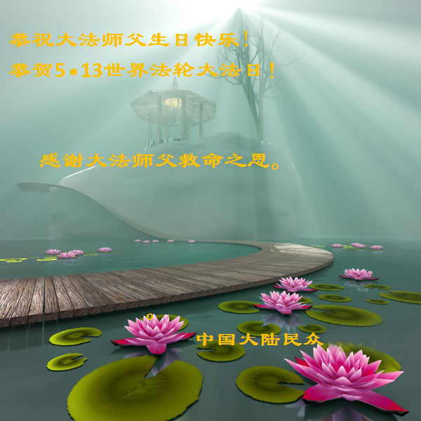 一中国大陆民众恭祝大法师父生日快乐!恭贺世界法轮大法日!