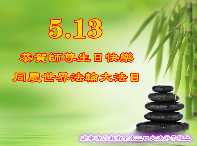 感恩师父慈悲救度和细心呵护。在正法的最后时刻,我们一定要更加严格要求自己,勇猛精進,修炼如初,助师正法,救度更多众生,让师父多一份欣慰,少一份操劳,完成史前誓愿,跟师父回家! 辽宁省丹东市全家三口大法弟子恭祝慈悲伟大的师父生日快乐!普天同庆世界法轮大法日!