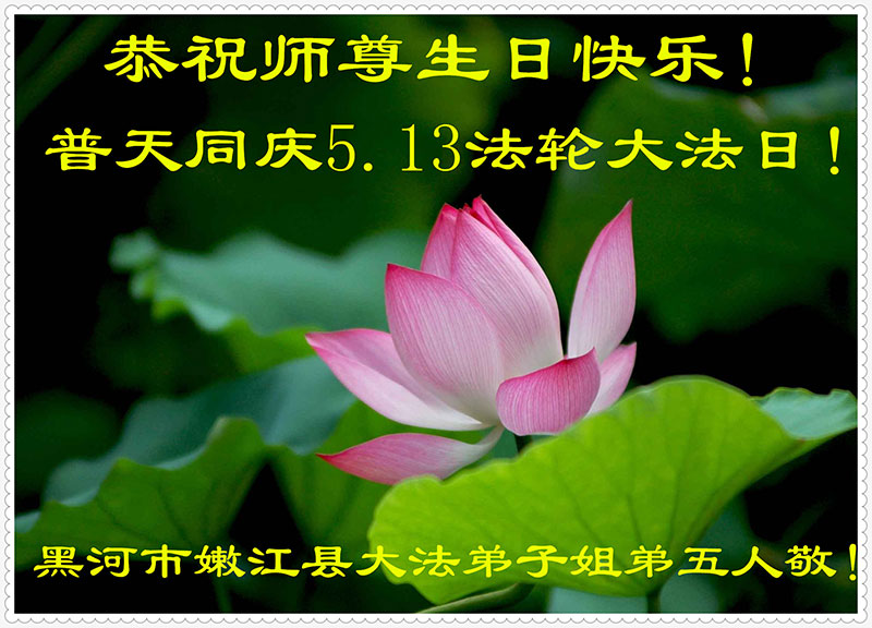 黑龙江省黑河市嫩江县大法弟子姐弟五人恭祝师尊生日快乐!普天同庆5.13法轮大法日!