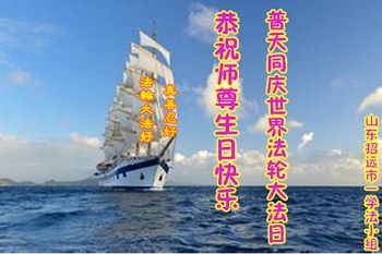感谢慈悲伟大的师父救度之恩!请师父放心,弟子一定听师父的话,助师正法,做好三件事。 山东大法弟子恭祝师尊生日快乐!普天同庆世界法轮大法日!