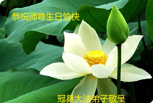 师父您好:弟子感恩师尊的慈悲苦度!感谢师父还在给我们修好的机会!今后不管在什么样的形势下,我们更应该牢记自己的使命,学好法,实修自己,做好大法弟子该做的三件事,快救人,多救人,越到最后越不能懈怠,越到最后要更加精進,决不辜负师父对我们的期望!决不辜负众生对我们的期盼!跟师父回家! 山东省聊城市冠县大法弟子恭祝师尊生日愉快!
