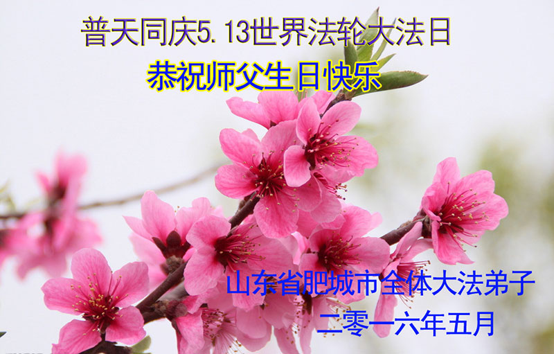 山东省泰安市肥城市大法弟子恭祝师父生日快乐!普天同庆世界法轮大法日!