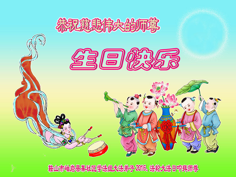 【明慧网二零一六年五月十日】 辽宁省鞍山市岫岩县某社区学法组大法弟子恭祝慈悲伟大的师尊生日快乐!