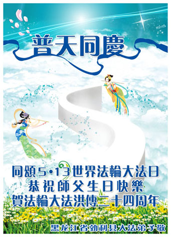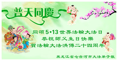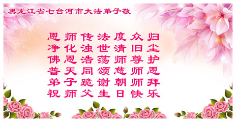 黑龙江省七台河市大法弟子恭祝师父生日快乐!普天同庆世界法轮大法日!贺法轮大法洪传二十四周年!