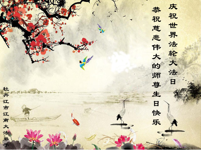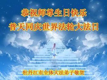 黑龙江省牡丹江市江南大法弟子恭祝慈悲伟大的师尊生日快乐!