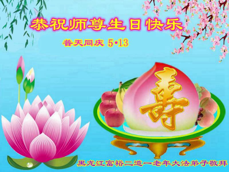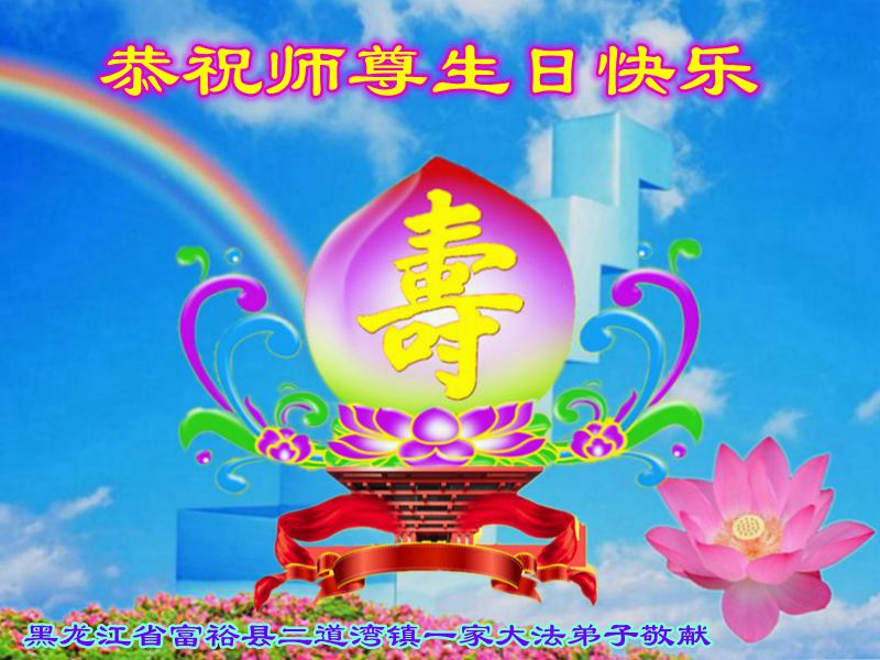 黑龙江省牡丹江市郊区大法弟子恭祝慈悲伟大的师尊生日快乐!