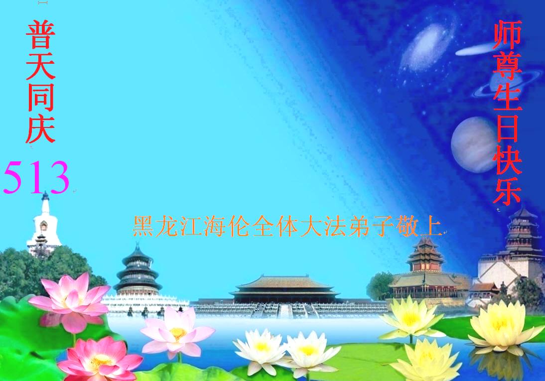 黑龙江海伦市全体大法弟子恭祝伟大的师尊生日快乐!普天同庆513世界法轮大法日! 黑龙江省绥化市海伦市事业单位大法弟子恭祝伟大的师尊生日快乐!