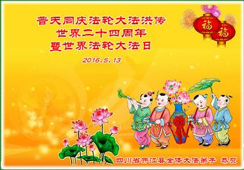 【明慧网二零一六年五月十一日】 山东省日照市大法弟子全家恭贺世界法轮大法日!