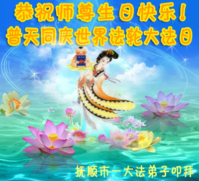 辽宁省抚顺市一大法弟子恭祝师尊生日快乐!同贺世界法轮大法日!