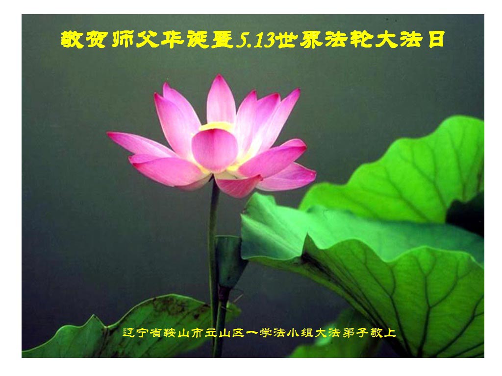 同庆5.13世界法轮大法日! 在这普天同庆慈悲伟大的师尊华诞暨传法二十四周年、欢庆5.13世界法轮大法日之际,弟子一定听师父的话,走师父安排的路,做好三件事,正念正行跟上正法進程,圆满随师还。 辽宁省鞍山市一学法小组大法弟子恭祝师尊华诞!
