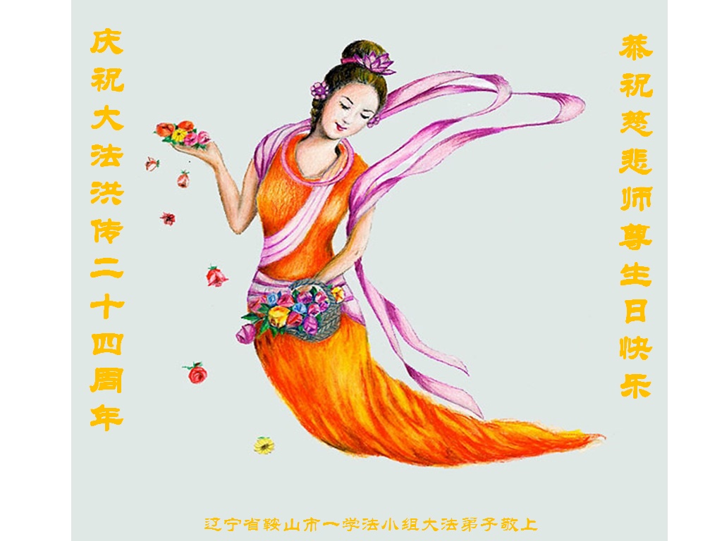 辽宁省鞍山市一学法小组大法弟子恭祝师尊华诞暨普天同庆世界法轮大法日 在世界法轮大法日来临之际,我们学法小组全体大法弟子向慈悲伟大的师尊问好!祝愿慈悲伟大的师尊生日快乐! 我们唯有做到修炼如初,做好三件事,才能让师尊少一份操劳,多一份欣慰。请师父放心! 辽宁省鞍山大法弟子恭祝师尊生日快乐!
